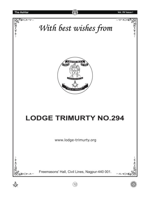 N A L G I O G E RAND LODGE The Ashlar R Vol. XV Issue I 12