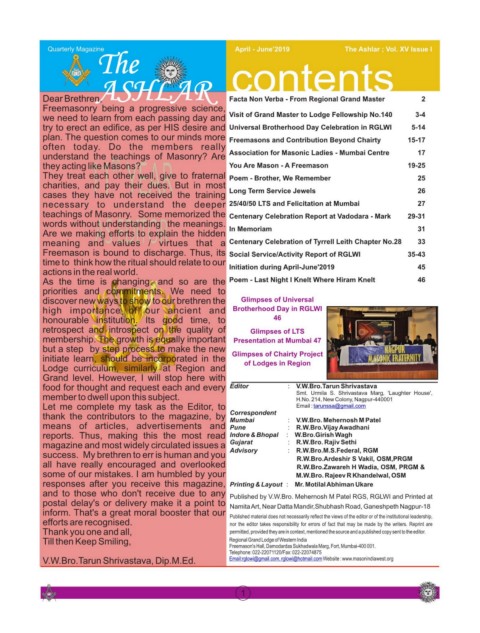 and to those who don't receive due to any Published by V.W.Bro. Mehernosh M Patel RGS, RGLWI and Printed at