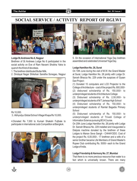 quench the thirst of devotees. Lodge Hamilton No. 26, Surat