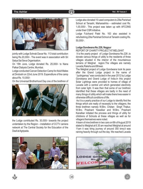 jointly with Lodge Sohrab Davar No. 113 total contribution It is the yearly project of Lodge Gondwana No.226 ,to