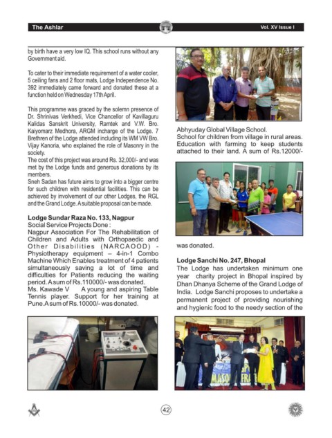 period. A sum of Rs.110000/- was donated. Dhan Dhanya Scheme of the Grand Lodge of