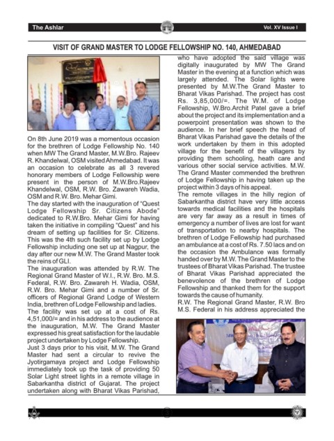 when MW The Grand Master, M.W.Bro. Rajeev village for the benefit of the villagers by