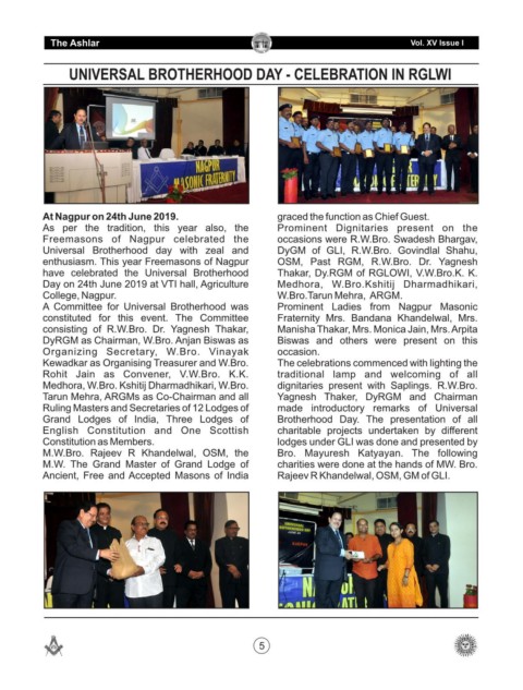 enthusiasm. This year Freemasons of Nagpur OSM, Past RGM, R.W.Bro. Dr. Yagnesh