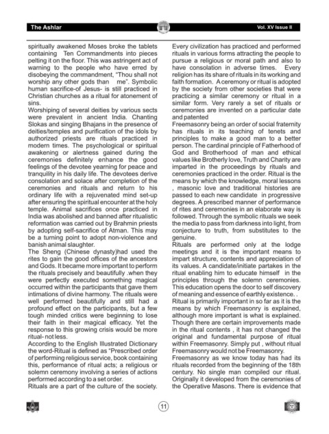 Rituals are a part of the culture of the society. the Operative Masons. There is evidence that
