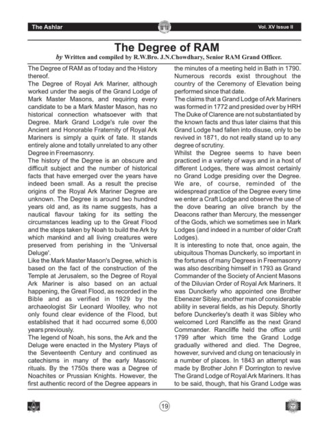 by Written and compiled by R.W.Bro. J.N.Chowdhary, Senior RAM Grand Officer.