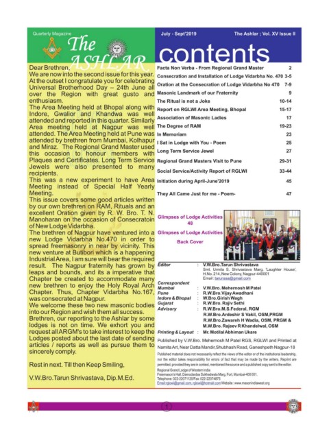 result. The Nagpur fraternity has grown by Editor : V.W.Bro.Tarun Shrivastava