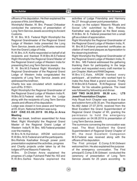 the Regional Grand Lodge of Western India for W. Bro. MS Federal addressed the gathering