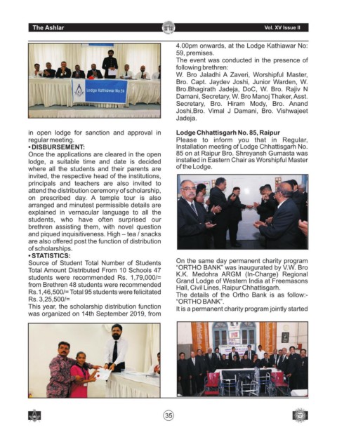 • DISBURSEMENT: Installation meeting of Lodge Chhattisgarh No.