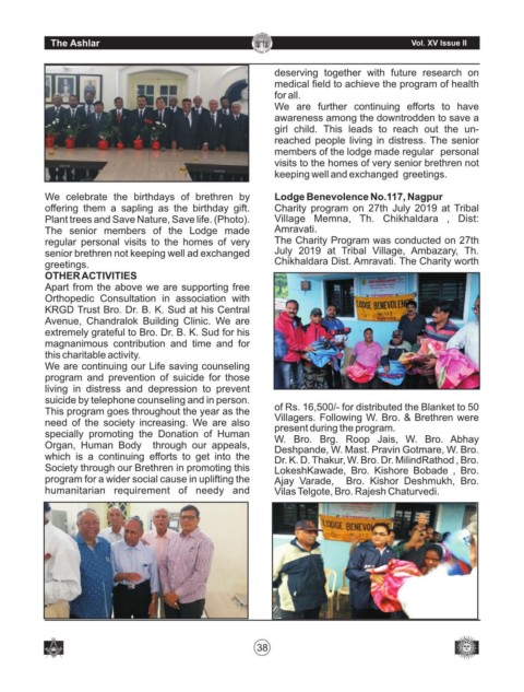 We celebrate the birthdays of brethren by Lodge Benevolence No.117, Nagpur