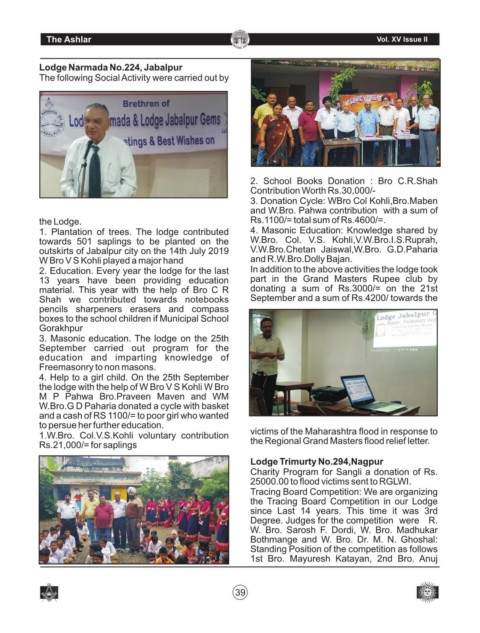 1. Plantation of trees. The lodge contributed 4. Masonic Education: Knowledge shared by