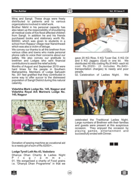 brethren and Lodges who sent financial and 5 KG Jaggery (Gud) in one kit. We