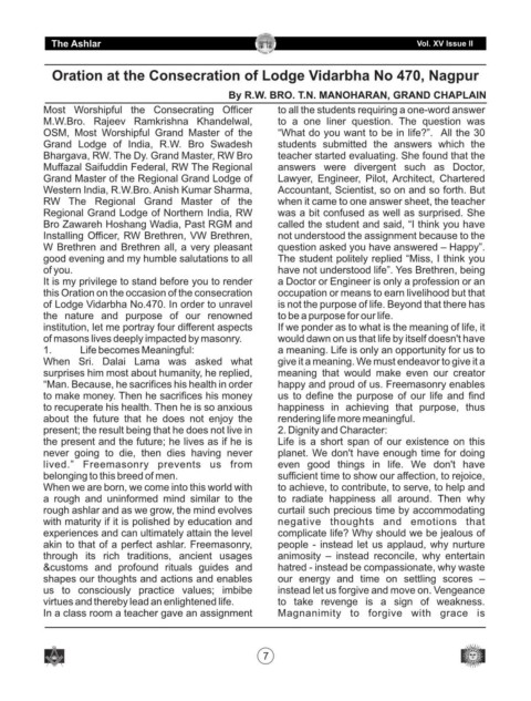 By R.W. BRO. T.N. MANOHARAN, GRAND CHAPLAIN