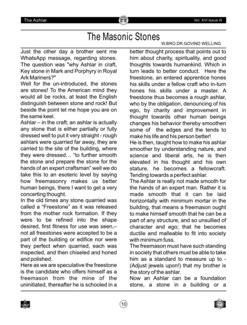 The question was "why Ashlar in craft, thoughts towards humankind. Which in