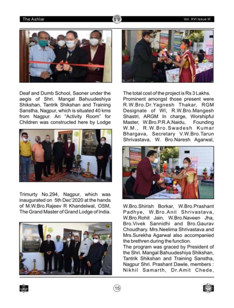 Sanstha, Nagpur, which is situated 40 kms Designate of WI, R.W.Bro.Mangesh