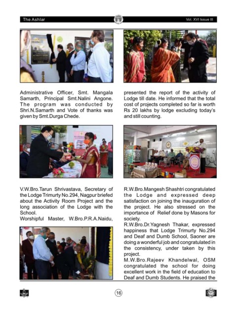 the Lodge Trimurty No.294, Nagpur briefed the Lodge and expressed deep