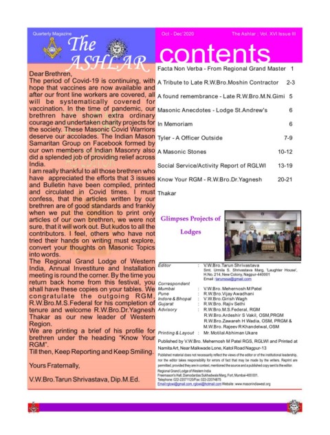 The period of Covid-19 is continuing, with A Tribute to Late R.W.Bro.Moshin Contractor 2-3